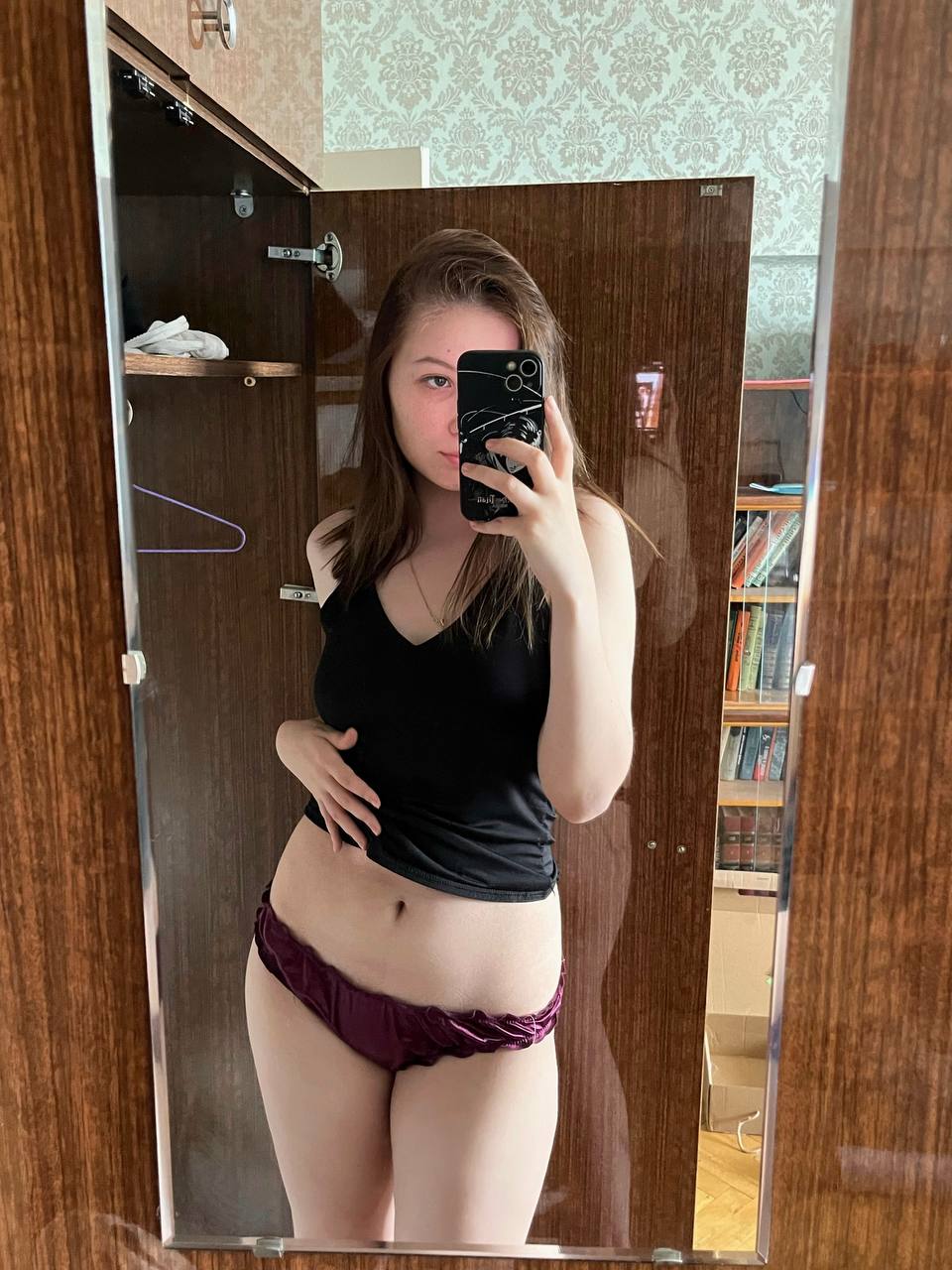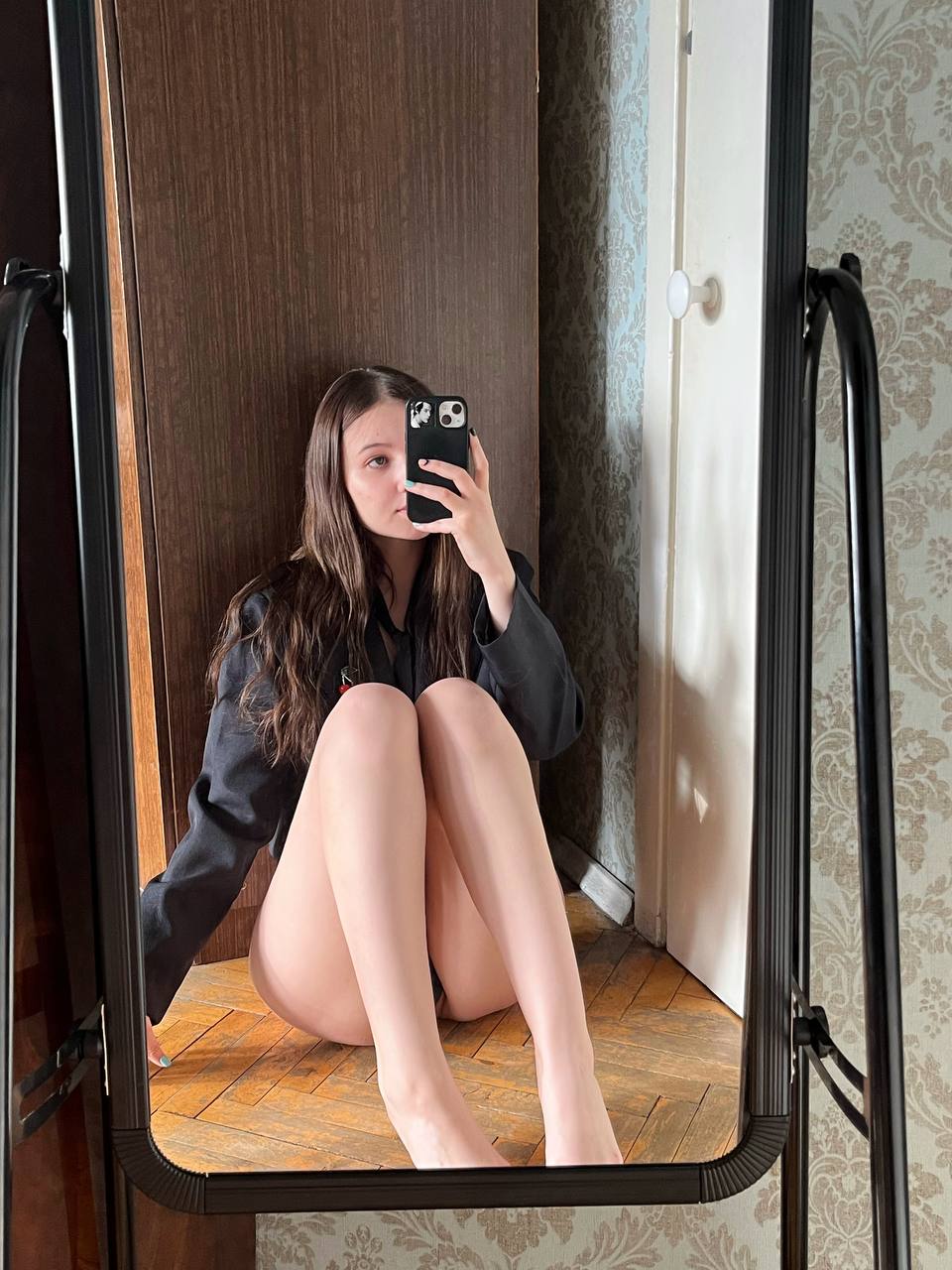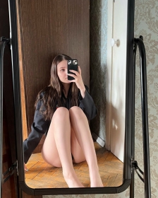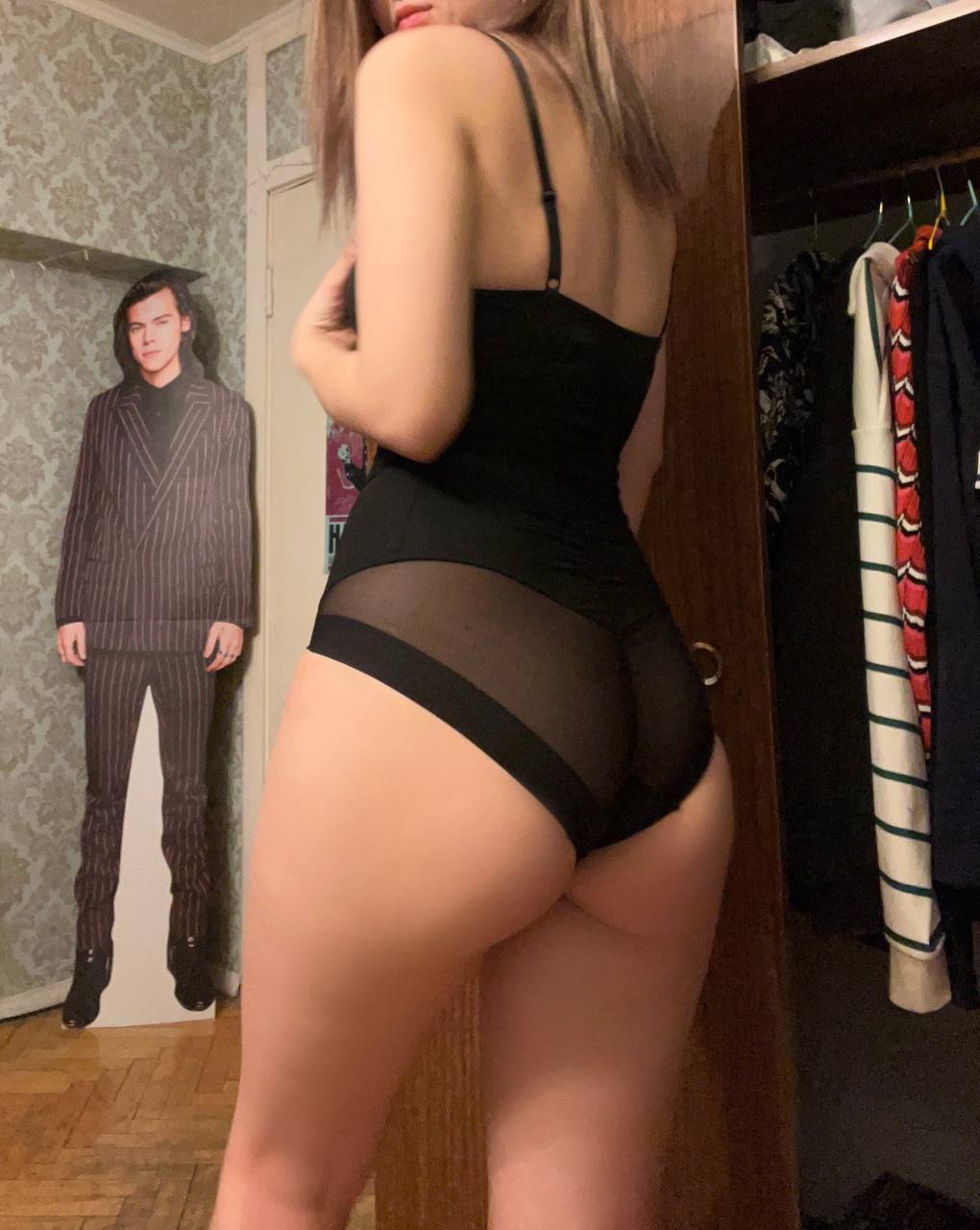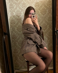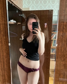 Молодая девушка, обладающая великолепным телом, демонстрирует его в полный рост.