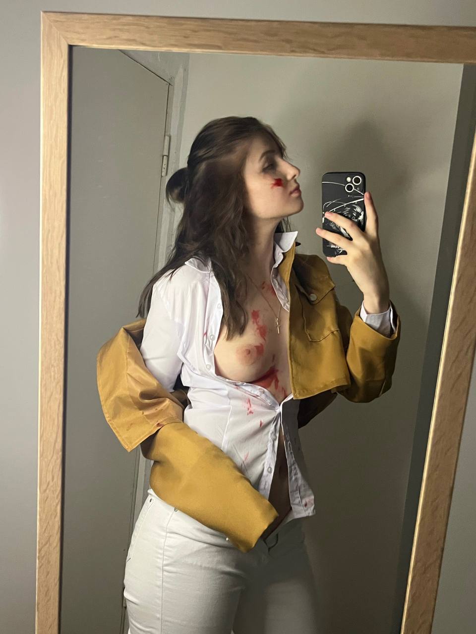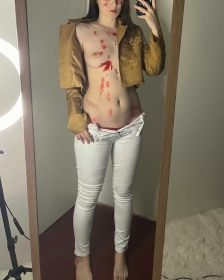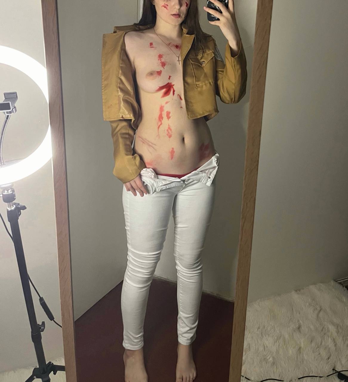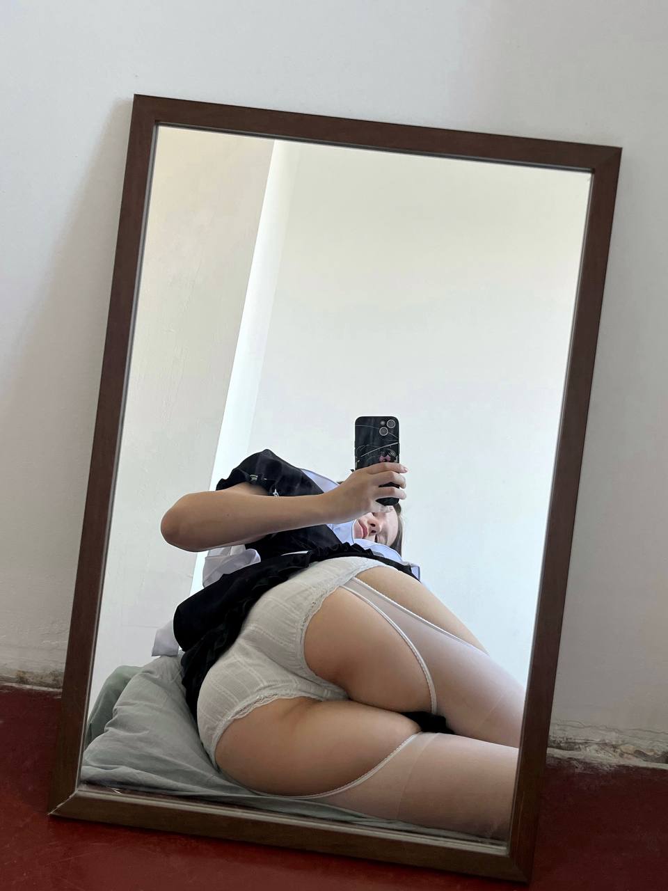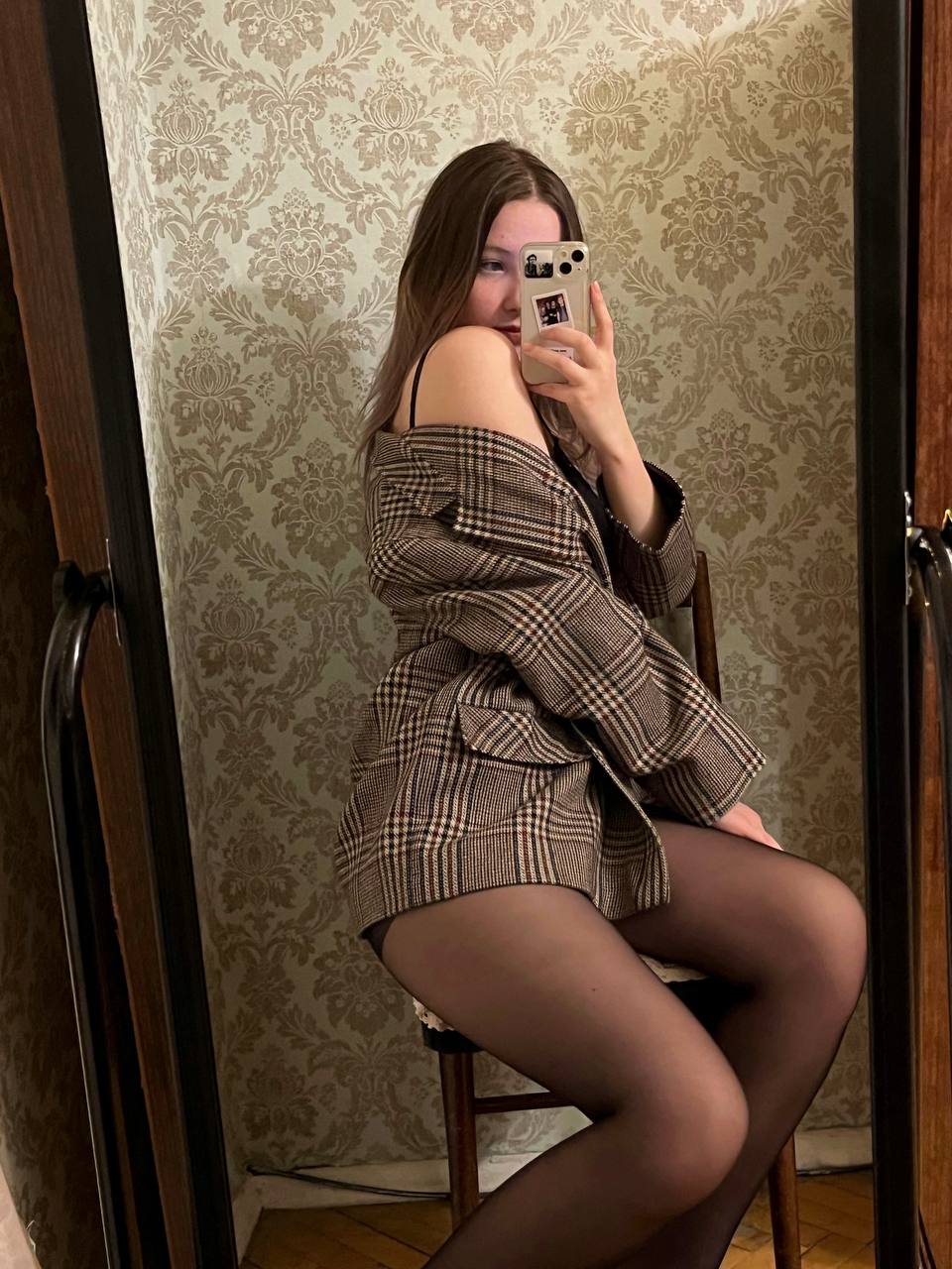 Молодая девушка, обладающая великолепным телом, демонстрирует его в полный рост.